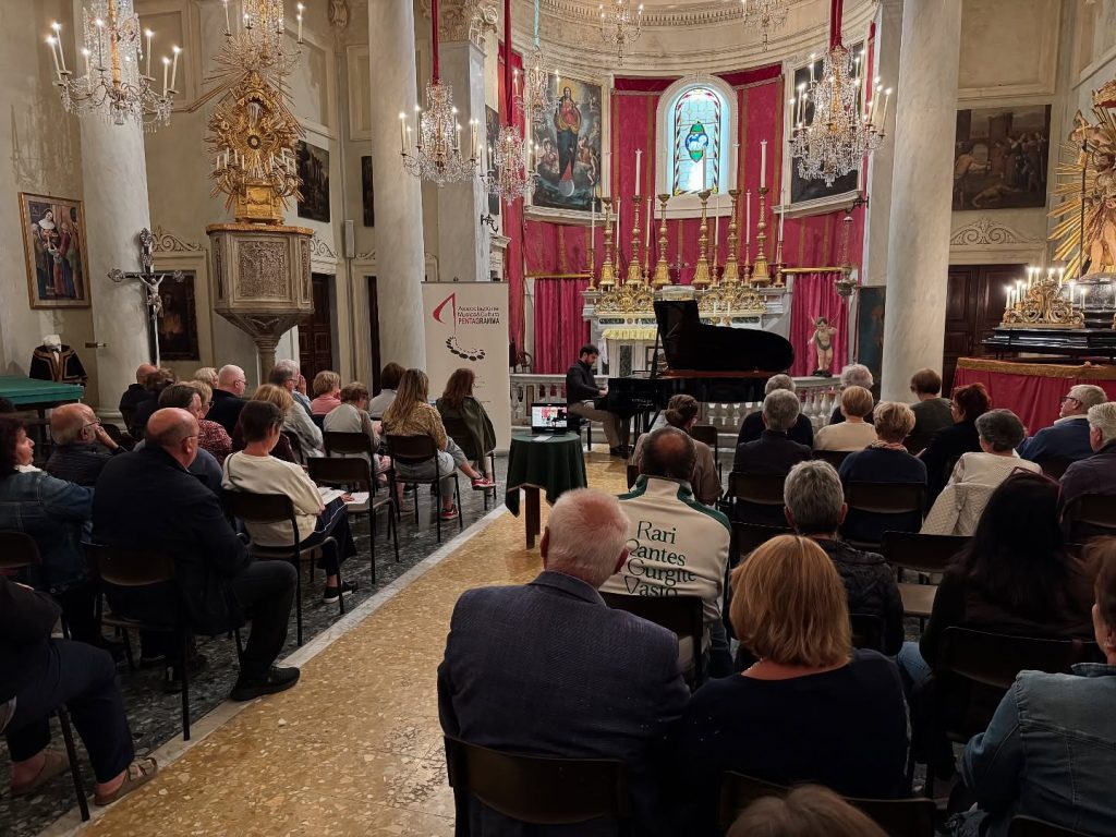 Last August 30th, our CEO and founder, Nicolò Giuliano Tuccia gave a recital at the Oratory of San Giovanni a Voltaggio in Piedmont for the 11th International Music Weeks. Giuliano captivated the audience with his charisma through a program that, among well-known and solidly performed pieces by Chopin, Rachmaninoff, and Liszt, also included the world premiere of a young Italian composer, Tobia Pizziranni. His Valse Sentimentale fit perfectly between Chopin’s nocturnes and Liszt’s second ballad.