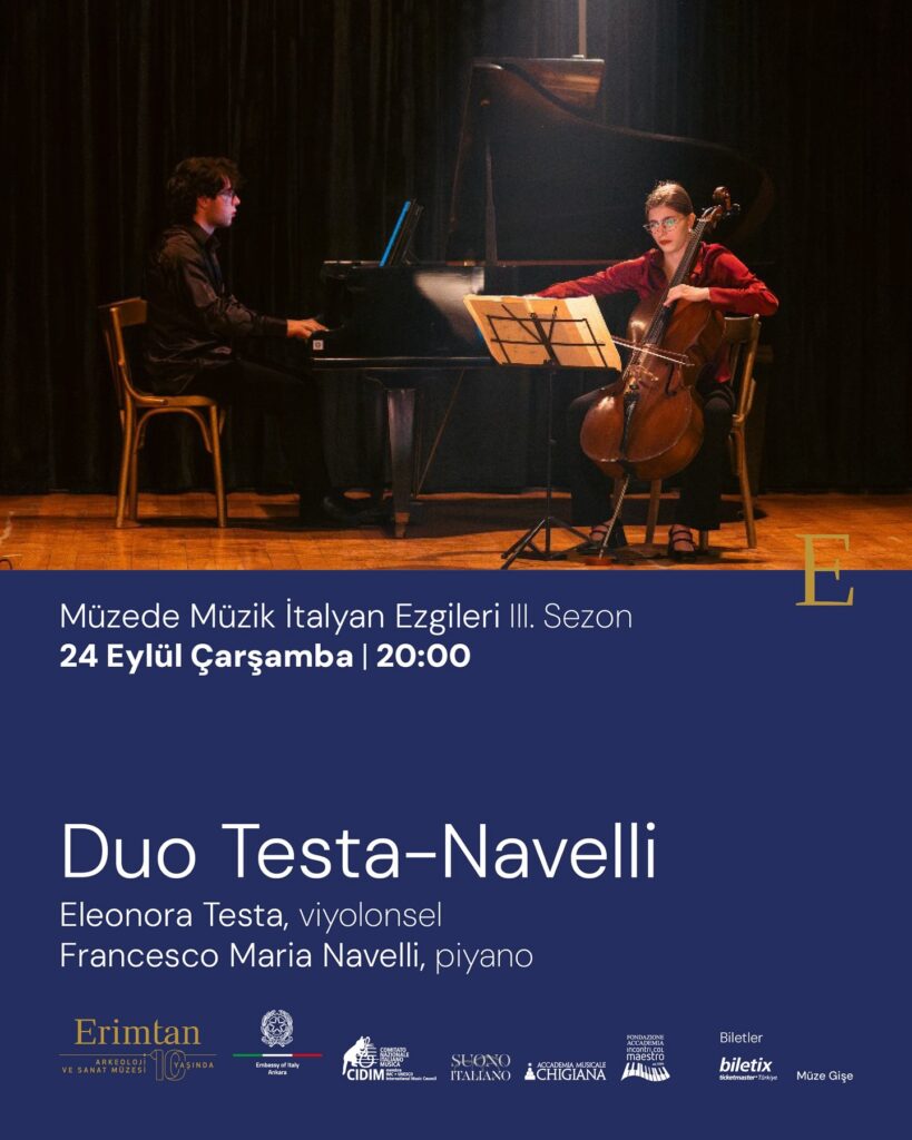 On September 24, the Testa-Navelli duo performed a concert at the Erimtan Museum in Ankara, Turkey. The concert was organized as part of the CIDIM‘s “Young Musical Talents in the World” project, in collaboration with the Italian Cultural Institute in Ankara and the Accademia Chigiana in Siena. The two young Italian talents presented a highly engaging program, combining composers such as Debussy and Arvo Pärt with Italian composers such as Martucci, Castelnuovo-Tedesco, and Azio Corghi. The aim was to introduce Turkish audiences to Italian music that is lesser-known outside of Italy. Here is the program: